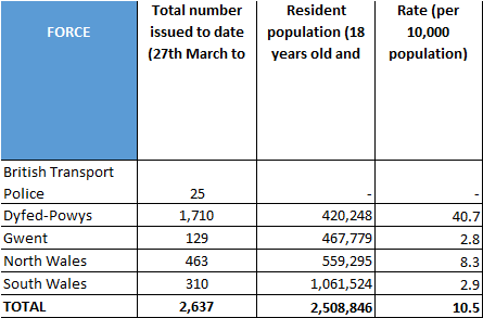 Data on the ethnicity of those who have been issued a fine indicate that around one in eight (12%) were given to those identifying as Asian and 4% to those identifying as Black. These figures do not include 16% of fixed penalty notices where the ethnicity of the individual issued with the notice was unknown (17% for England and 7% for Wales). The full breakdown of these statistics is available here (PDF).